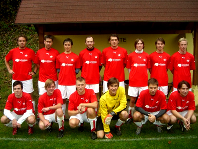 Schon um 1/4 1 der Ankick - die Kabinen werden für das anschließende Meisterschaftsspiel benötigt und müssen dann frei sein - und der Rote Stern noch ohne Ersatzspieler. Nur die 2 Debütanten Philipp und Karl ist es zu verdanken, dass zu dieser Zeit bereits 11 Leute am Platz stehen. Dem Gegner geht's noch schlechter, beginnt die Partie sogar in numerischer Unterlegenheit.