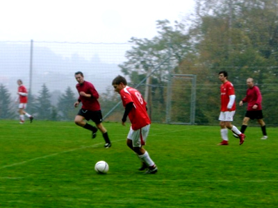 Von diesem Moment an wogt das Spiel hin und her. Der rote Stern findet einige Chancen den Rückstand noch in eine Führung zu verwandeln, so rettet der Tormann nach einer Eckballhereingabe mit den Fingerspitzen vor Neubauers Kopf und pariert später im Spiel von diesem einen Schuss, den einige Stern-Spieler wohl schon im Kreuzeck drinnen gesehen haben. Doch auch die 1B hat genügend Chancen. Einen schönen Stanglpass vergibt der Stürmer vor dem fast leeren Tor, einen Stangenschuß mussten wir hinnehmen und Dominik hatte auch noch Gelegenheit sich einige Male auszuzeichnen. Ein Tor wollte beiden Mannschaften nicht mehr gelingen, Karl P. schoss sich noch schnell selbst in die Leistengegend um der Halbzeit zumindest ein Highlight hinzuzufügen und das war's im Großen und Ganzen...