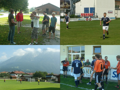 Und wir wurden gleich einmal auf den Boden der Realität zurück geholt. Anfangs noch große Sprüche geklopft, mussten wir gleich einsehen, dass die Tiroler Mannen nicht nur zum Schaulaufen gekommen waren. Nach einem katastrophalen Rückpass von Mario Neubauer ging die Heimmannschaft mit 1:0 in Führung. Dies nicht genug, stellten sie 10 Minuten später nach einem misslungen Klärungsversuch von Thomas Schadlbauer auf 2:0. Wir waren sehr damit beschäftigt, die Angriffe der stark aufspielenden Tiroler abzuwehren. Dank unsern Tormann Christian "Olli" Großschädl, der mit starken Reflexen das 2:0 bis zur Pause hielt, war eine kleine Chance noch da.